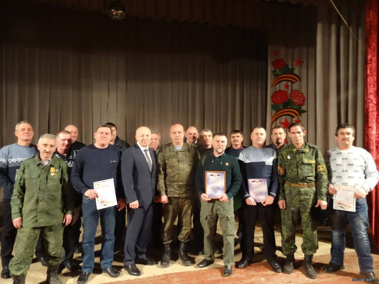 Продолжилось мероприятие вручением грамот и благодарностей от администрации Новоазовского района и Новозовского отделения ОД "ДР" афганцам и выступлением местных коллективов.