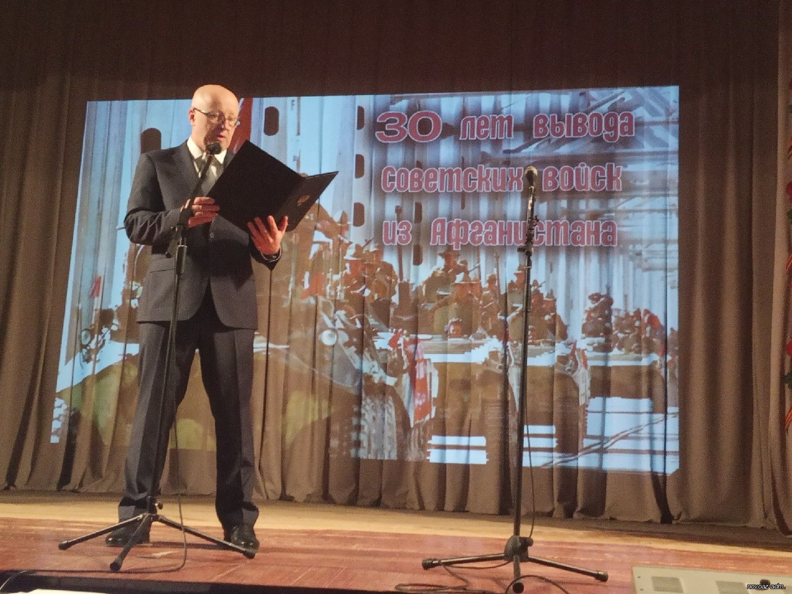 В рамках проекта "Эхо времен" Новоазовское отделение Общественного Движения "Донецкая Республика" совместно с администрацией Новоазовского района, отделом культуры администрации Новоазовского района и отделом образования администрации Новоазовского района провели торжественное мероприятие, посвященное 30 - летию со Дня вывода советских войск из Афганистана. В числе приглашенных - воины-интернационалисты, родители погибших воинов, ветераны района, старшеклассники города.