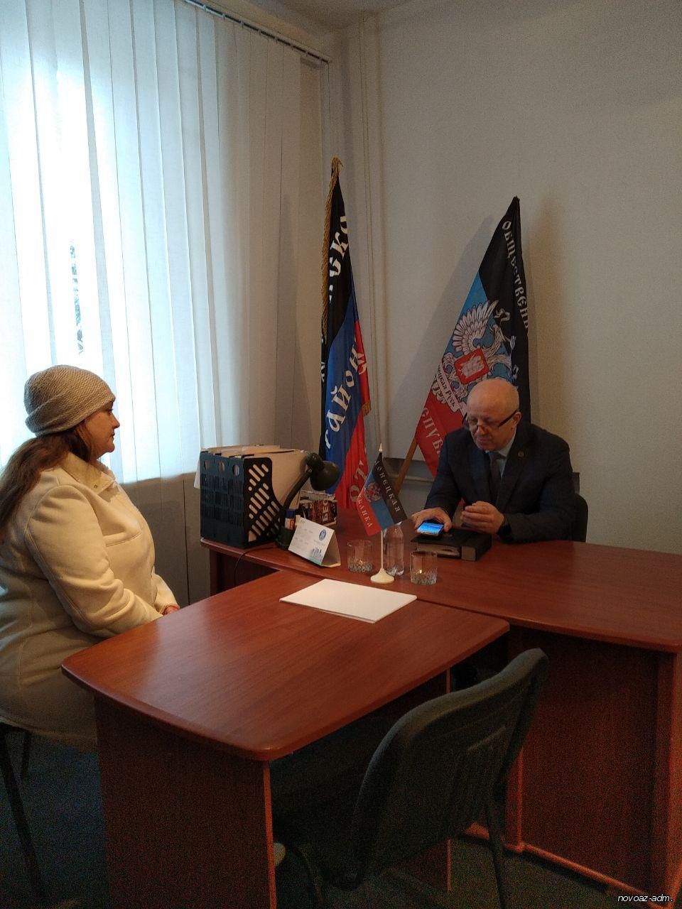 22 февраля глава администрации Новоазовского района, секретарь МО ОД «ДР» Олег Валериевич Моргун провел прием граждан в Общественной приёмной Председателя ОД «ДР» Пушилина Д.В. в г. Новоазовске. К Олегу Валериевичу обратились жители города с вопросами, которые касались повышения пенсионных выплат, предоставления жилья медицинскому работнику и получения разъяснения по размещению временных объектов торговли. На все вопросы граждане получили ответ, некоторые вопросы поставлены на контроль. На личных приёмах граждан по линии Общественного движения «Донецкая Республика» жители района имеют дополнительную возможность обратиться за помощью в администрацию Новоазовского района и своевременно её получить.